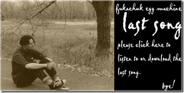 I recorded the very last ever fukachuk egg machine song a couple weeks ago. I have decided to put that up for people to listen to. The whole thing feels like someone very close to me has died, but it is something that has to happen... i can't just go on wearing the same clothes everyday and expect anything to change.